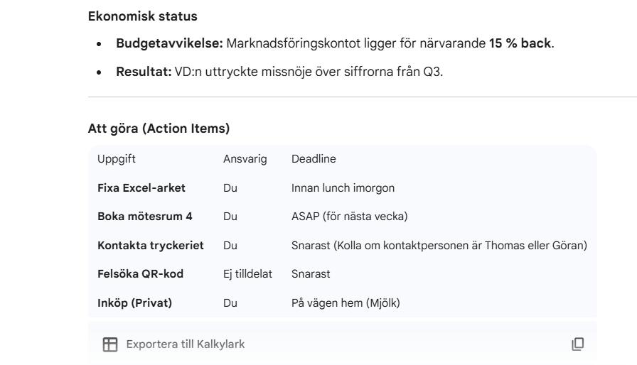 Så här får du bättre och mer strukturerad sammanfattning och även förslag på en "Att göra-lista" som man kan dela ut till deltagarna. Du får även fler förslag, att t ex skriva ett mail till gruppen.