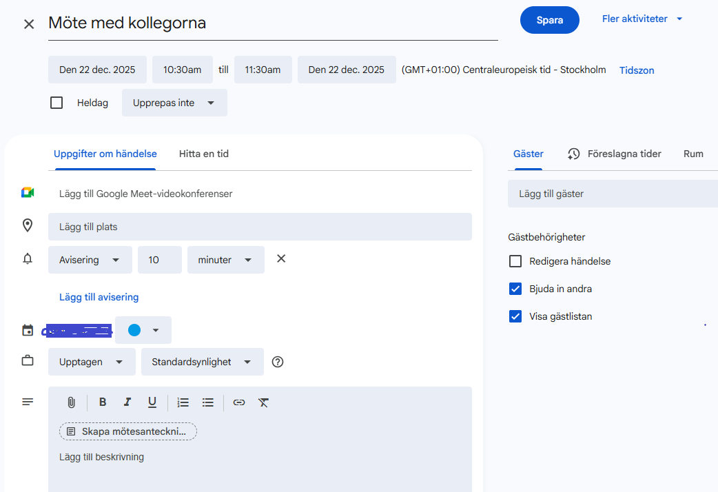 13. Exempel - Så här startar du automatisk transkribering för möten i Google Workspace Calendar