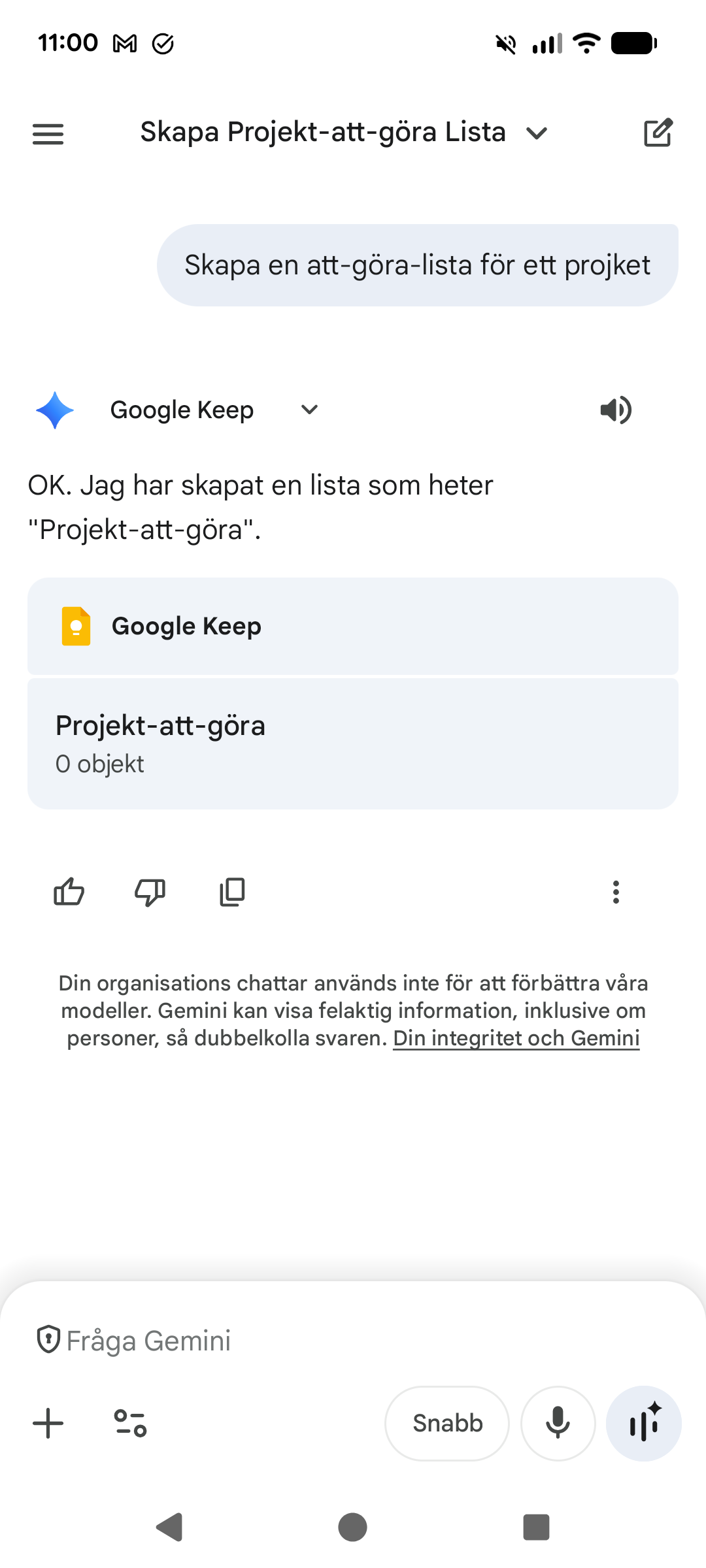 3. Resultat: AI (Gemini) har nu skapat en lista i Keep: