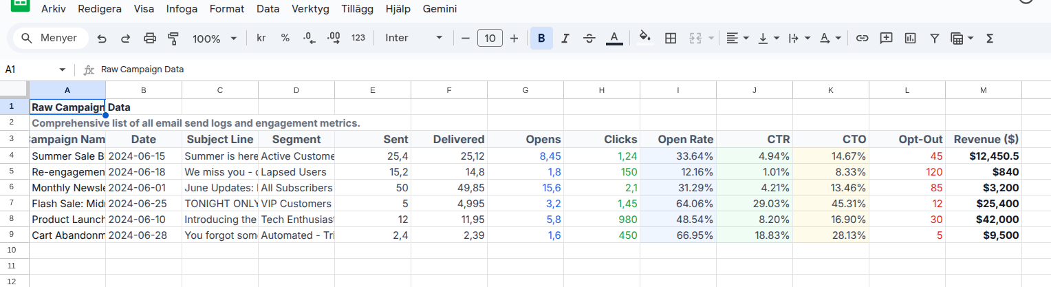 1. Här är en fil med statisk över ett E-postutskick